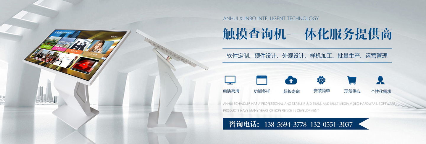 迅博智能 位于中國(guó)科教城---合肥市,和經(jīng)濟(jì)開發(fā)區(qū)與高新區(qū)毗鄰,地址合肥市肥西縣湯口路與皋城路交口人民萬(wàn)福產(chǎn)業(yè)園一期12棟東側(cè),是一家IT領(lǐng)域的高新技術(shù)企業(yè),全心全意服務(wù)于信息化建設(shè),做專業(yè)的信息化提供商,全力打造信息時(shí)代新模式。 迅博智能 主要從事觸摸屏、觸摸顯示器、OLED柔性觸摸屏、觸摸查詢一體機(jī)系列產(chǎn)品及觸摸顯示互動(dòng)體驗(yàn)軟硬件產(chǎn)品;智能排隊(duì)叫號(hào)、網(wǎng)上預(yù)約排隊(duì)叫號(hào)、安康碼皖事通取號(hào)系統(tǒng);曲面屏、OLED 屏幕、柔性屏、LCD液晶大屏拼接系統(tǒng);落地式、壁掛式單機(jī)版網(wǎng)絡(luò)版室內(nèi)外廣告機(jī)及數(shù)字標(biāo)牌廣告信息發(fā)布系統(tǒng);室內(nèi)外LED電子格柵透明屏、單雙色、全彩電子大屏;各類辦事?tīng)I(yíng)業(yè)廳:公積金...